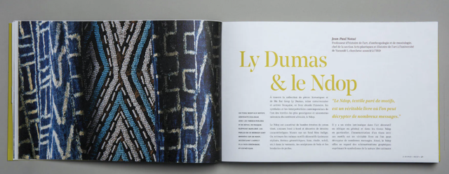 Ouvrage scientifique et technique consacré à l’étoffe royale Ndop qu’elle a adopté dans son travail de créatrice de mode. Une collaboration de Ly Dumas et plusieurs scientifiques, historiens et artistes passionnés.